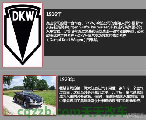DKW小奇迹企业从detroit汽车公司得到6缸和8缸汽车发动机方案设计和生产线设备,接着推出了各自装有这两款发动机新式奥迪车。
